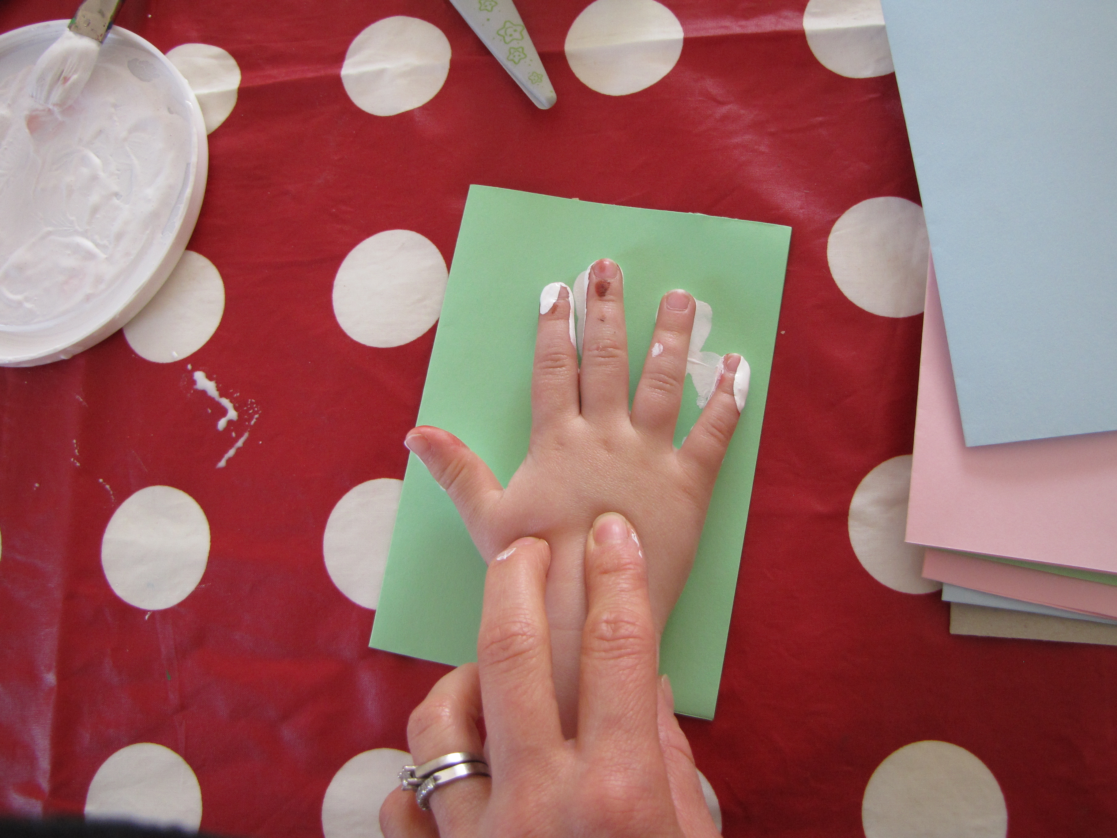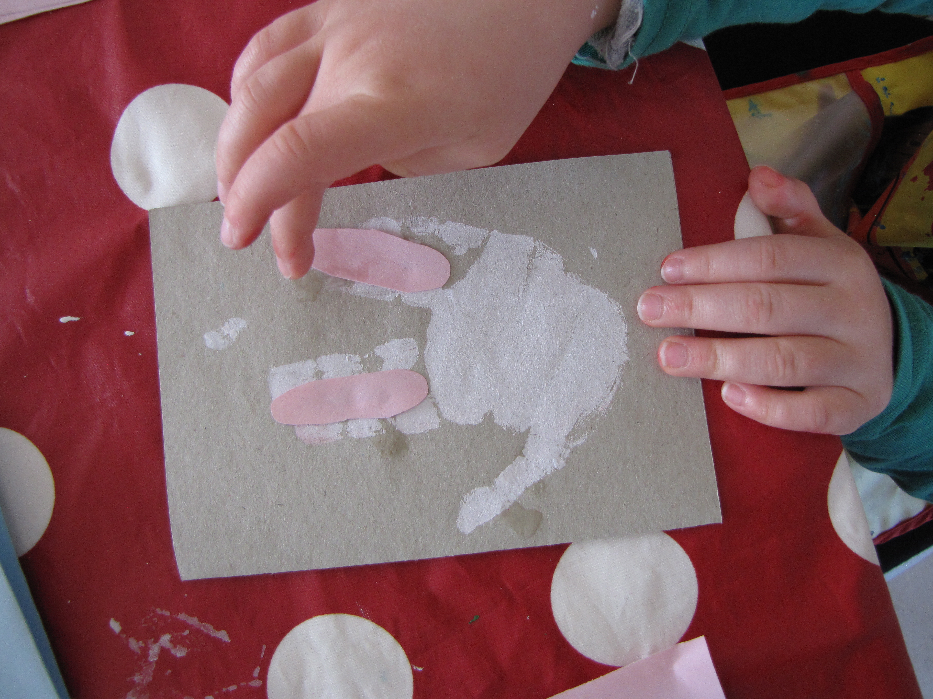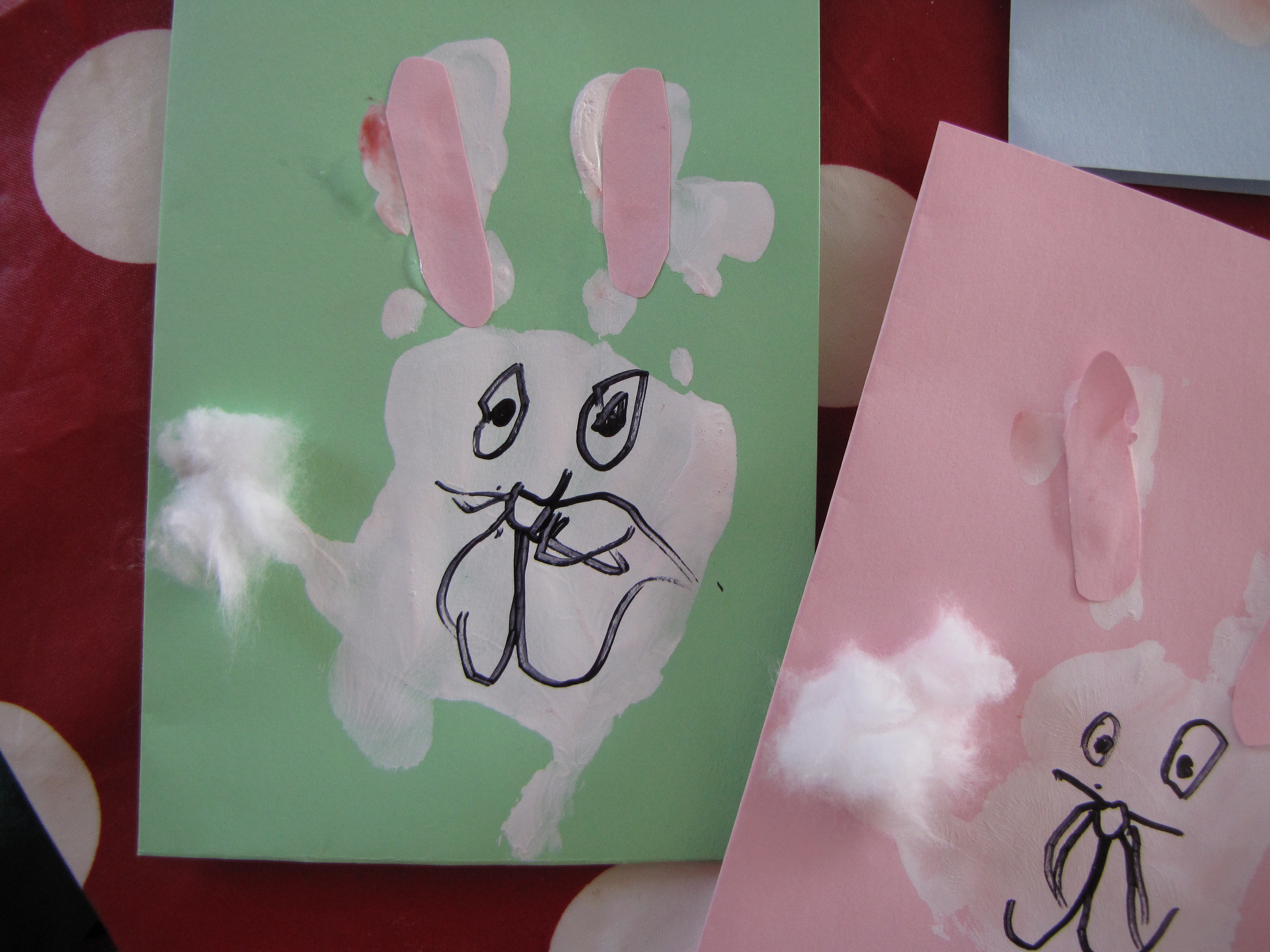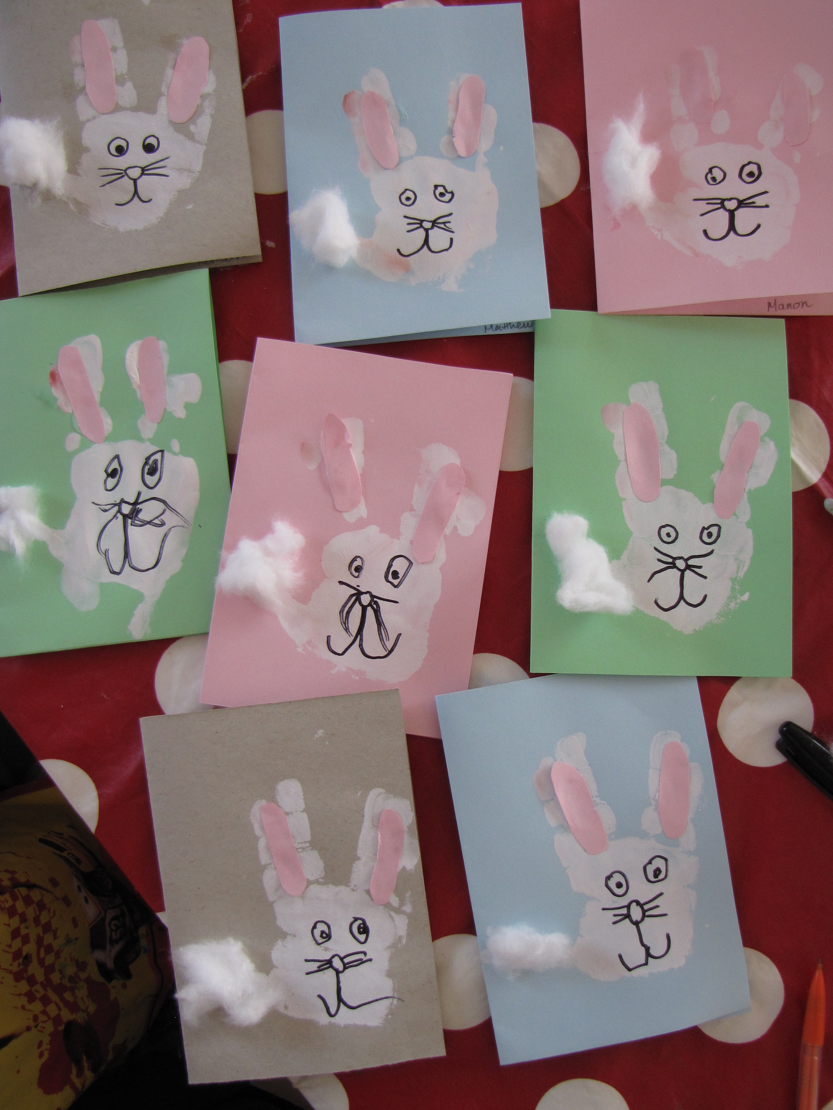For this week’s home project I found an adorable activity, from ateacheratheart, for you to share with your little one. It involves handprinting, paint, colored paper, cotton, glue, scissors and a black marker. Once you’re done you’ll have a beautiful, and original, set of handcrafted Easter cards to give away. My boy decided to give them to his bestfriends, who will you give yours to?