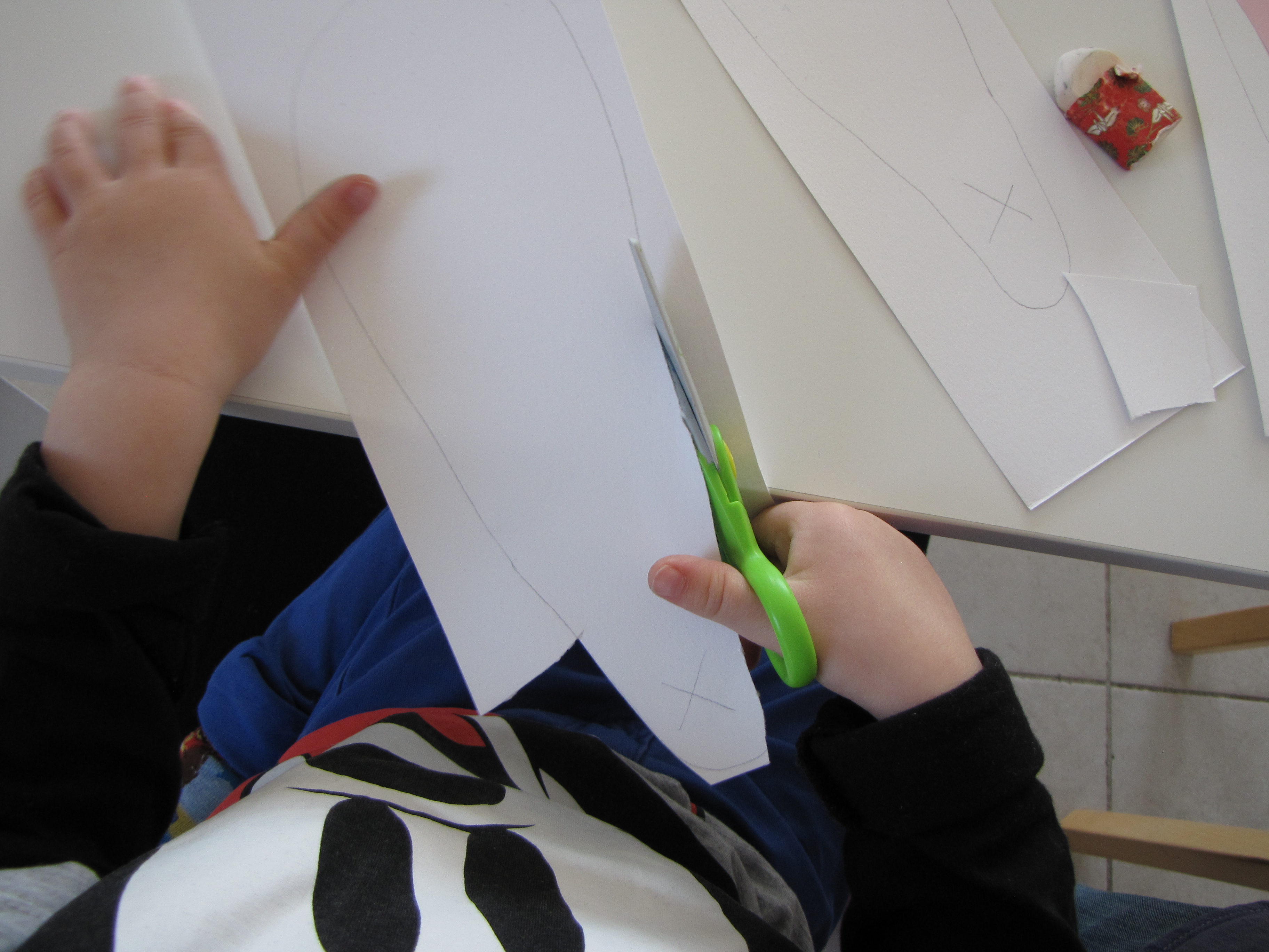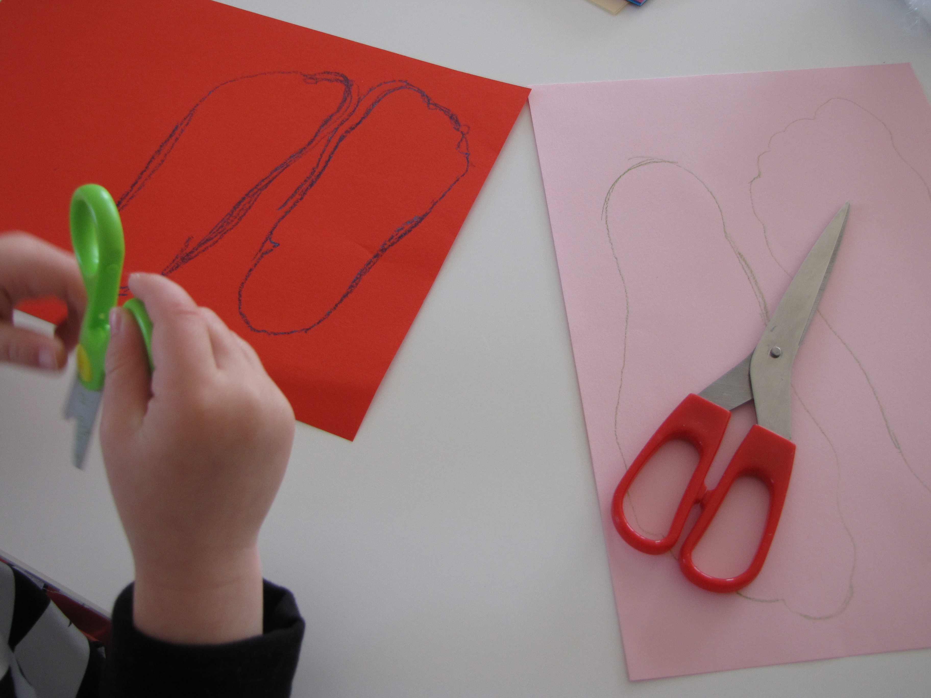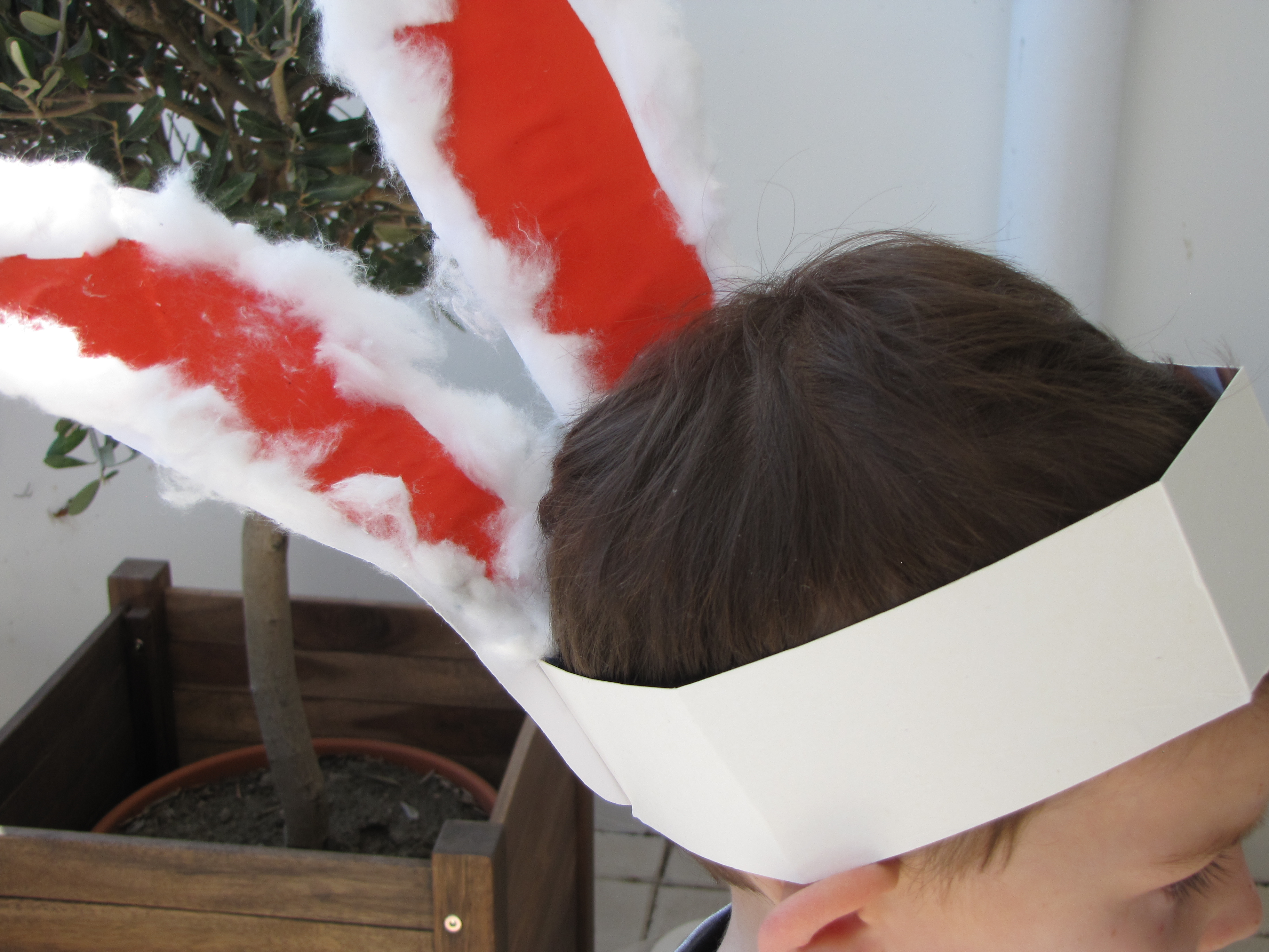Easter is fast approaching and I’ve been busy trying to find new ways to introduce your child to the word “bunny”. After looking through lots of different activities I decided to make one that combines a few. In this case you’ll be making bunny ears out of foot prints and adding cotton and a headband to allow your child the ability to hop, skip and jump to the “sleeping bunnies song” that we’ve been singing in class lately.