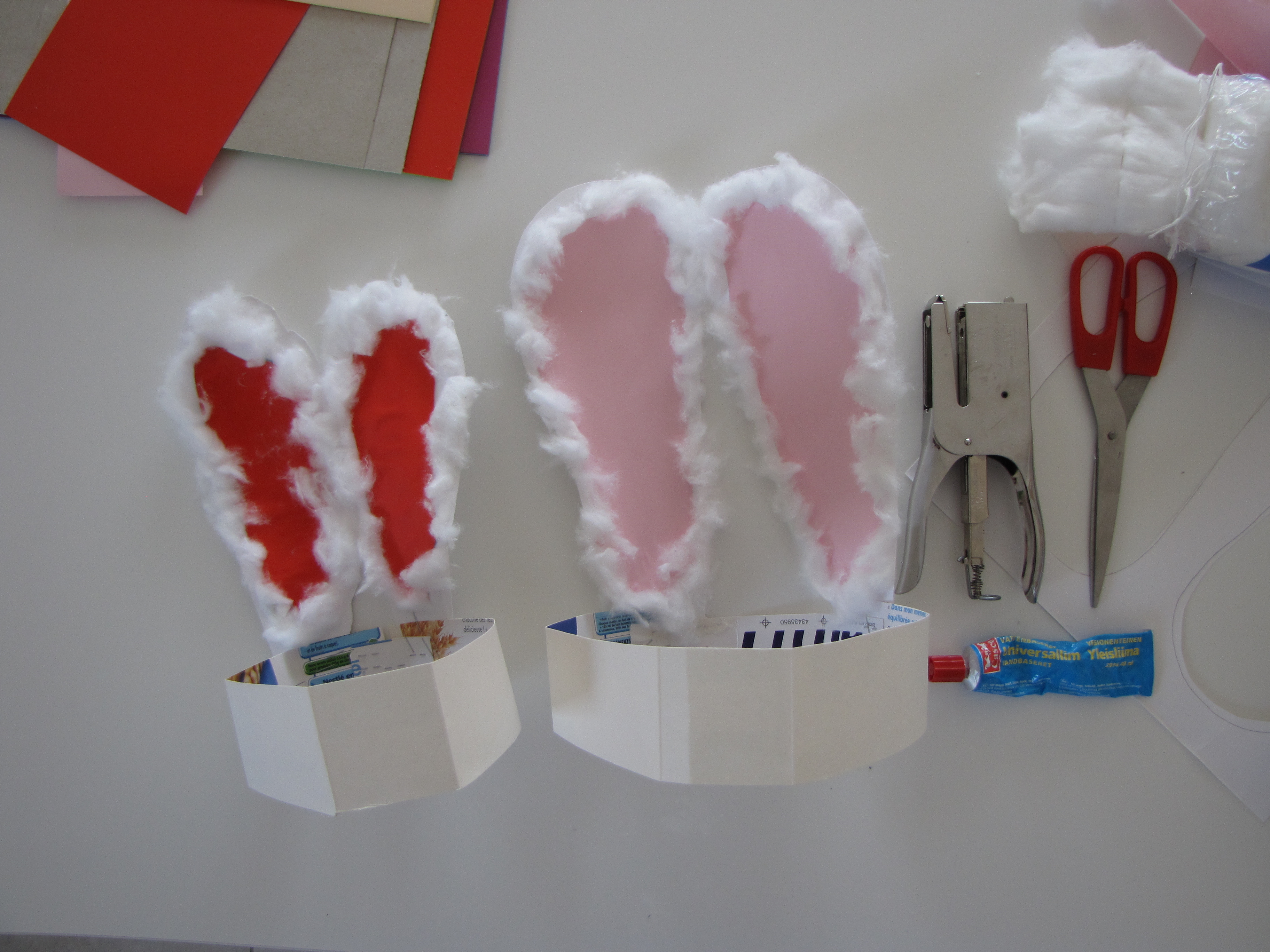 Pâques approche à grands pas et j’ai été très occupée à essayer de trouver une nouvelle façon de présenter à votre enfant le mot «bunny». Après avoir vu une multitude d’activités possibles, j’ai décidé d’en faire une qui combine un peu tout. Dans ce cas, vous aurez à faire des oreilles de lapin en utilisant vos empreintes de pieds et du coton à fixer sur un bandeau. Puis, il n’y a plus qu’à sauter, sauter et sauter sur la chanson “sleeping bunnies” que nous avons chanté en classe ces derniers temps.