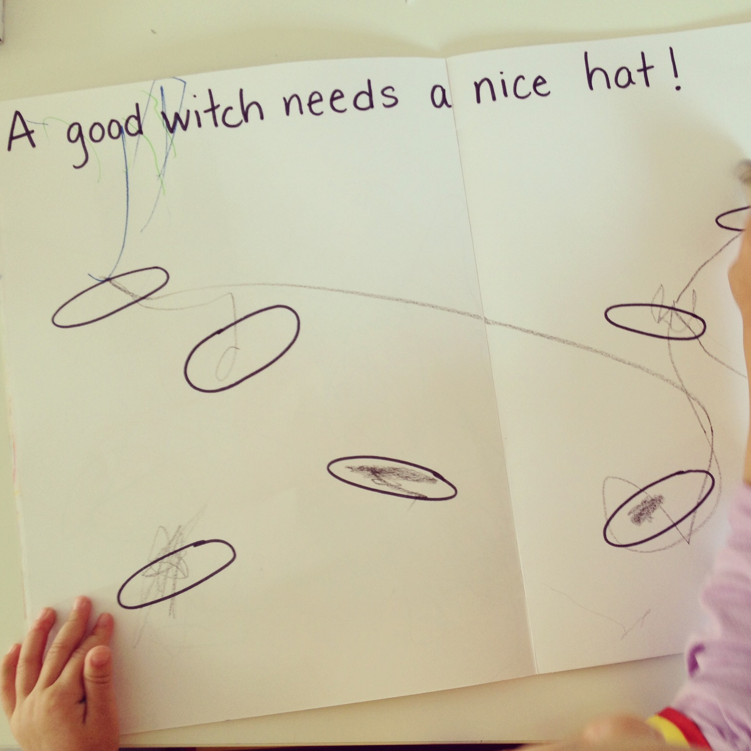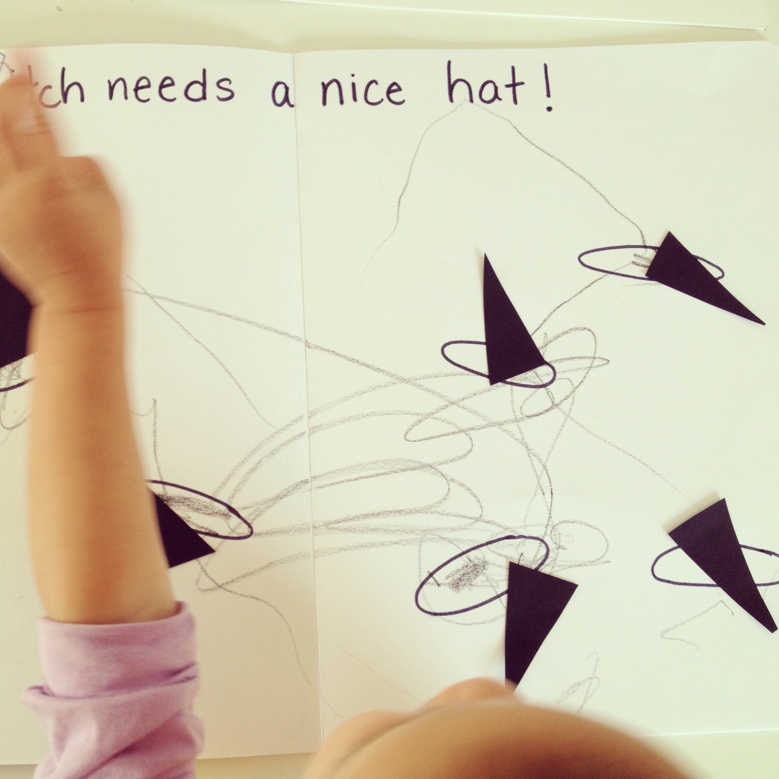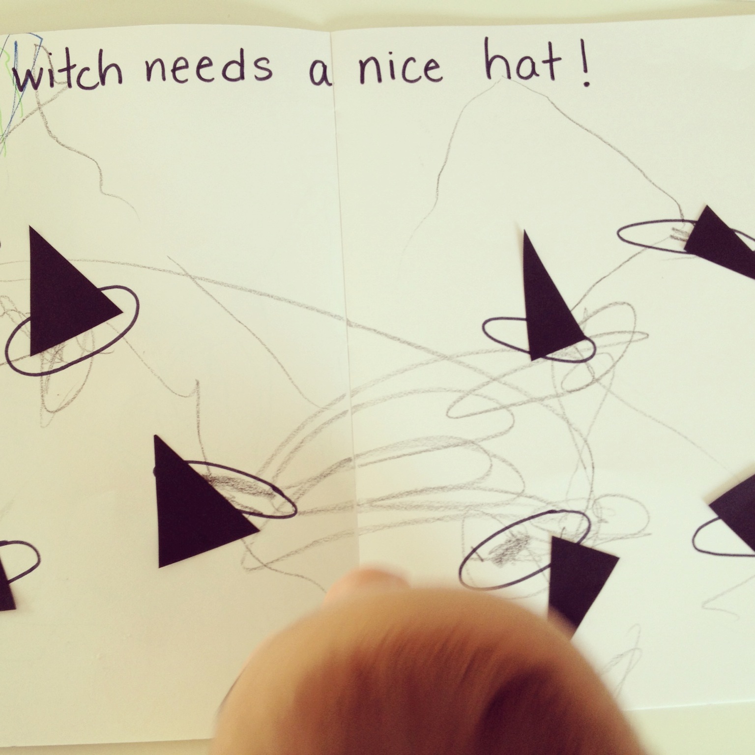 This little activity that I came up with is geared towards my youngest students. It allows them to practice listening to simple instructions and challenges their motor skills. Remember, the outcome may not be perfect but it’s really not about whether or not the witch hats are straight. It’s about giving them little challenges and watching them smile in the process.