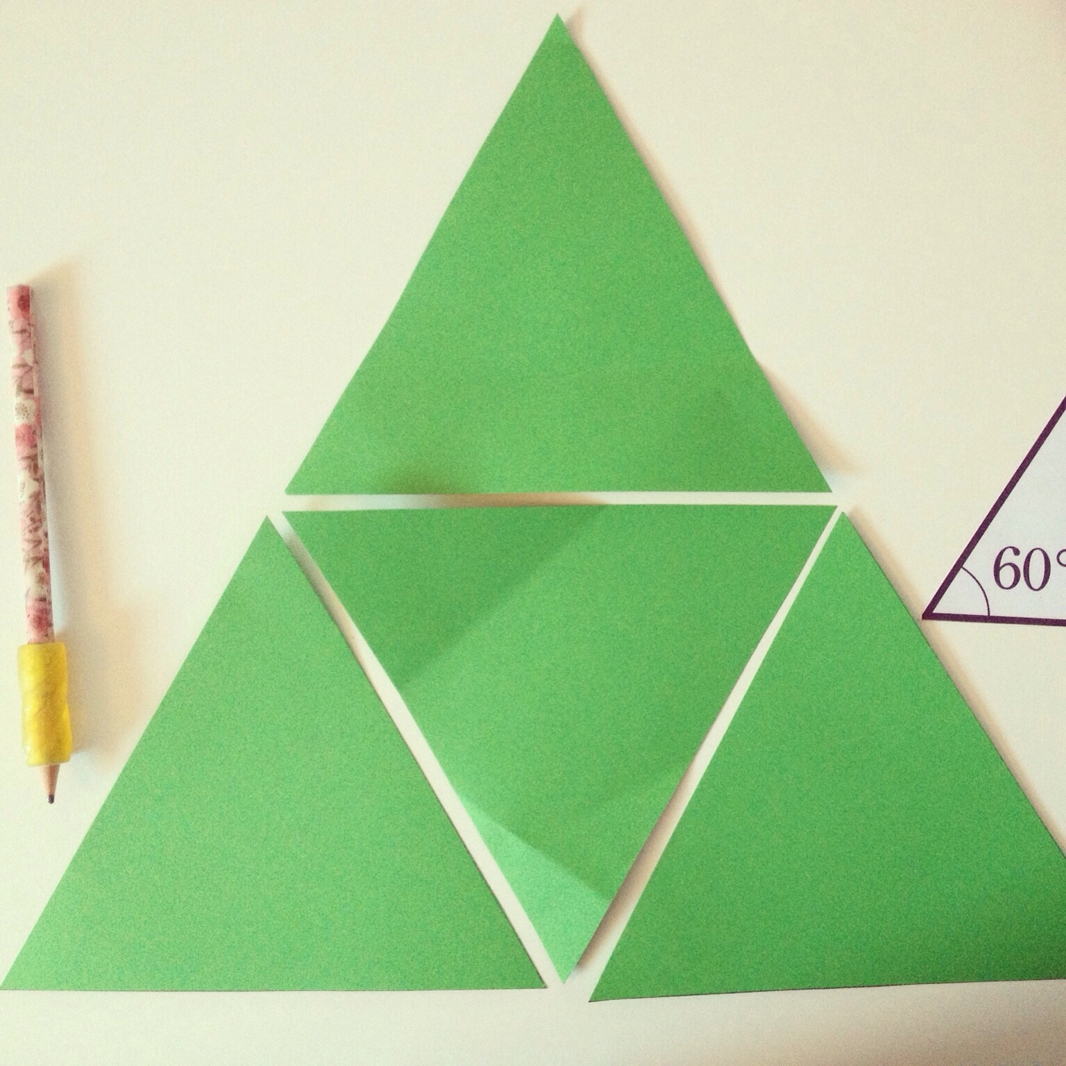 Voici un projet facile, par un professeur américain, que j’ai trouvé à teacherideafactory.blogspot.ca. Vous pouvez utiliser le même triangle équilatéral impression que celui que j’ai trouvé ici. Amusez-vous!