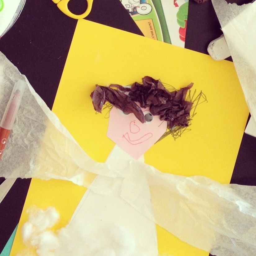 Today our Saturday class was partly spent making angels. They weren’t your regular angels though because these angels were full of pizazz and character! Just look at their hair ;)