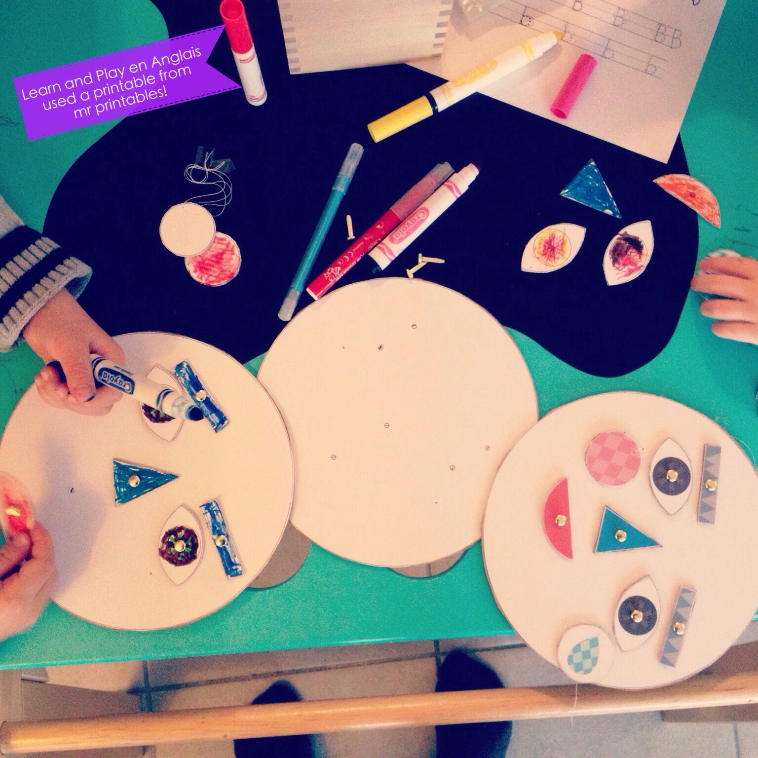 We are starting to learn about our bodies and the five senses in our Saturday class and I thought that I’d start with the face and concentrate on how your eyes can see how people are feeling without them having to say a word. This can be hard work for young foreign language learners as they’ll have to learn a lot of new vocabulary words all at once. However, I think that I solved that problem when I found this free DIY printable project from mr. printables over at www.mrprintables.com.