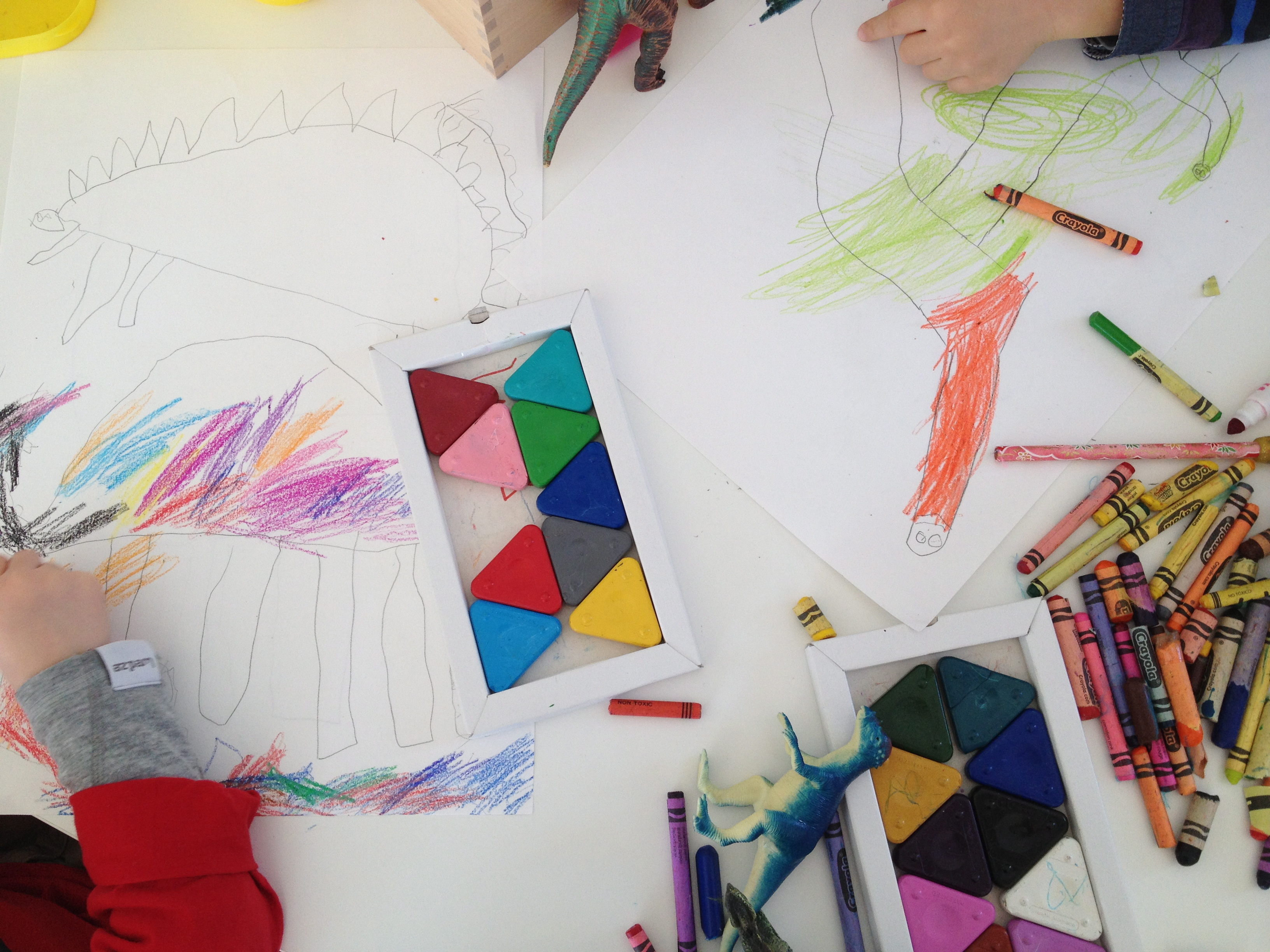 Nous faisons notre chemin à travers les cinq sens ces derniers temps et je dois dire que nous avons été très occupés! Nous sommes passés par le sens de la vue et avons déterminé les expressions du visage et nous avons dessiné avec les yeux fermés. Nous avons découvert le sens du goût avec notre séance cuisine spéciale muffin, puis le sens de l’odorat avec des pochoirs d’épices. Maintenant,nous allons découvrir l’ouie en écoutant les sons que font les dinosaures. Même s’ils ne sont pas réels, ils sont ce que certains scientifiques pensent à quoi ils pourraient ressembler. Ecoutez vous-même.
