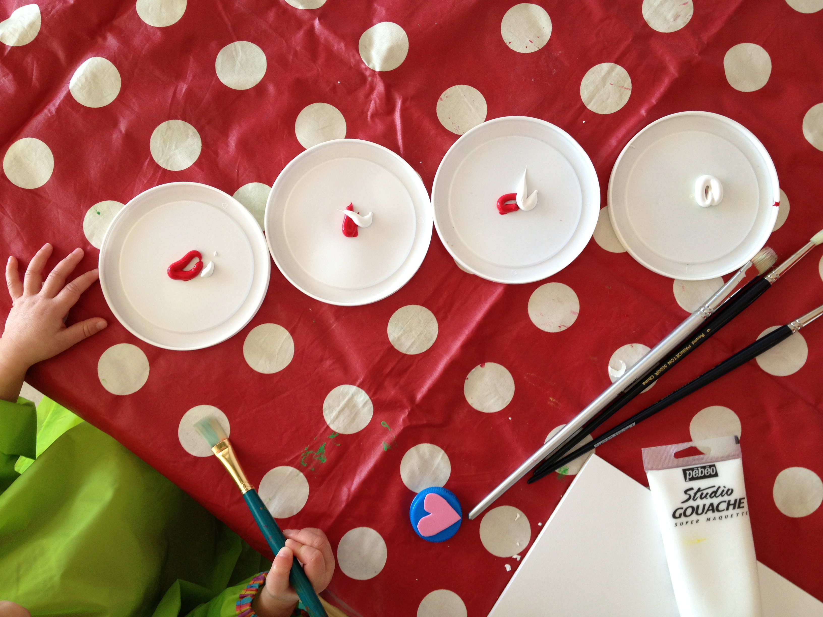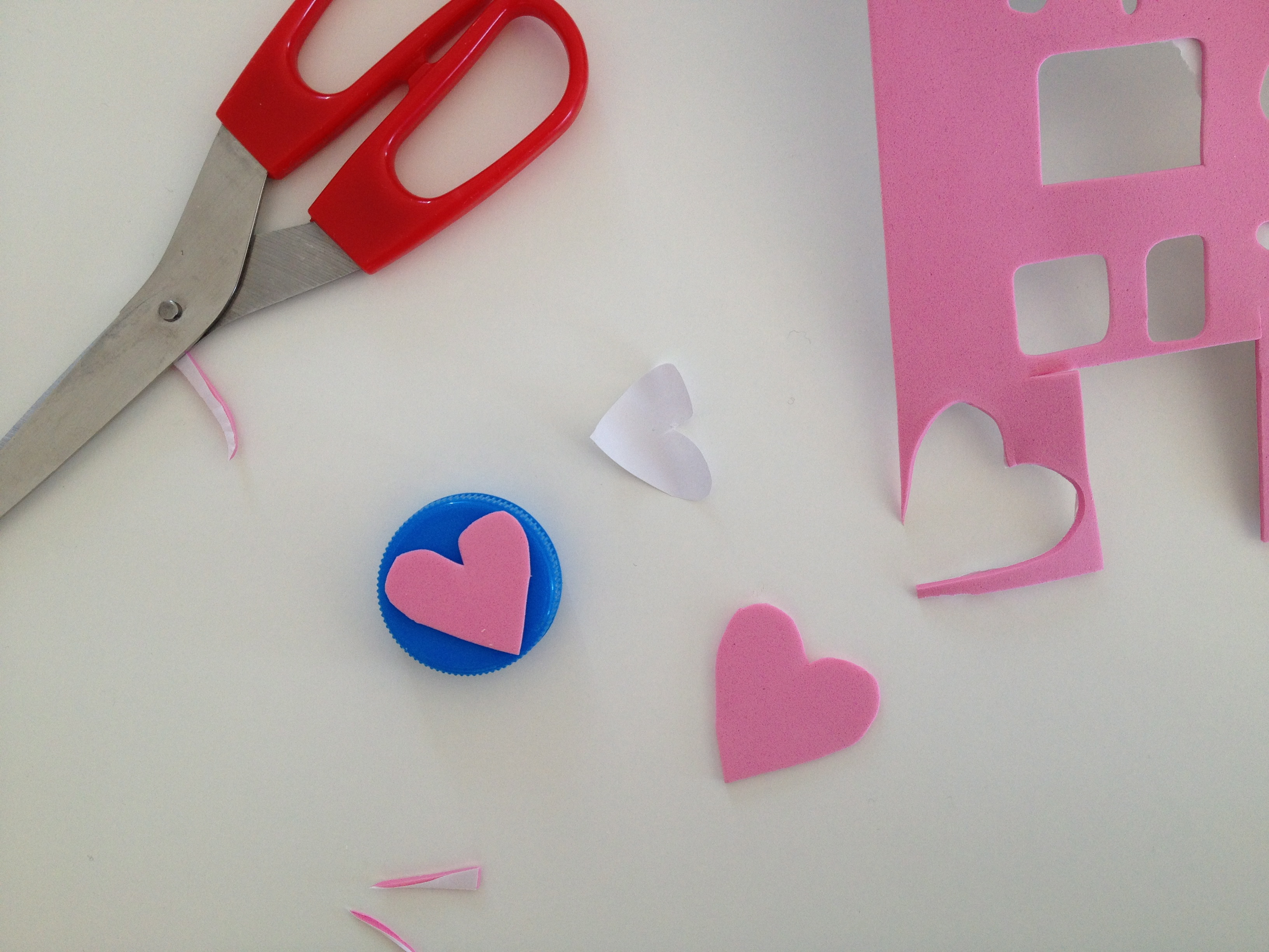 My daughter of two years, and I, very much enjoyed making some of our stickers using homemade stamps. To make them we took some foam paper and stuck them onto some milk bottle tops. Very easy and affordable. Then we just followed Natalie’s tutorial and before you know it, we had a collection of original handmade cards.