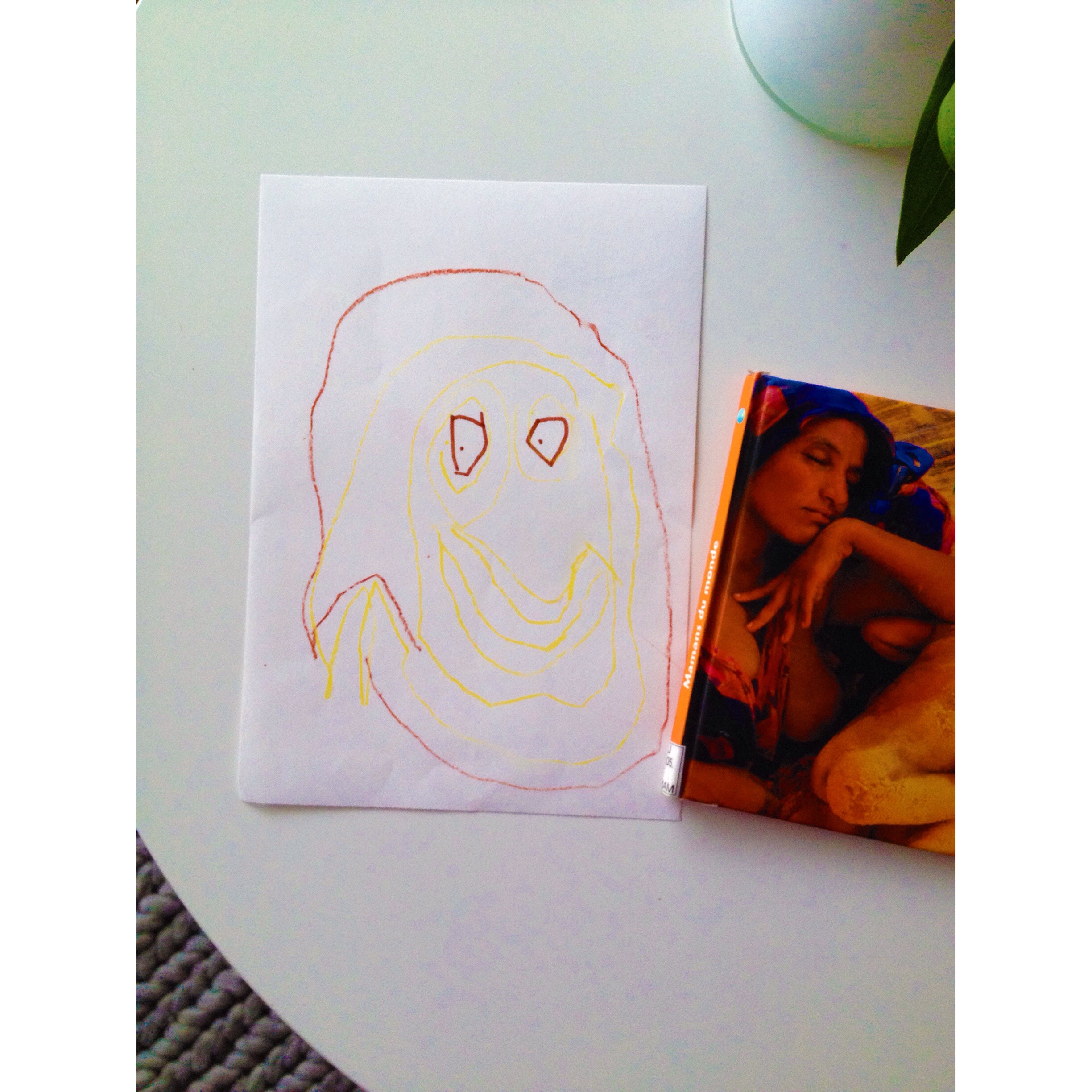Ensuite nous avons dessiné des portraits de nos mères. Comme on pouvait le craindre, certaines d’entre nous ont des moustaches (hihi) et d’autres resemblent à la dame ci-dessous (et oui, c’est censé être MOI!!).