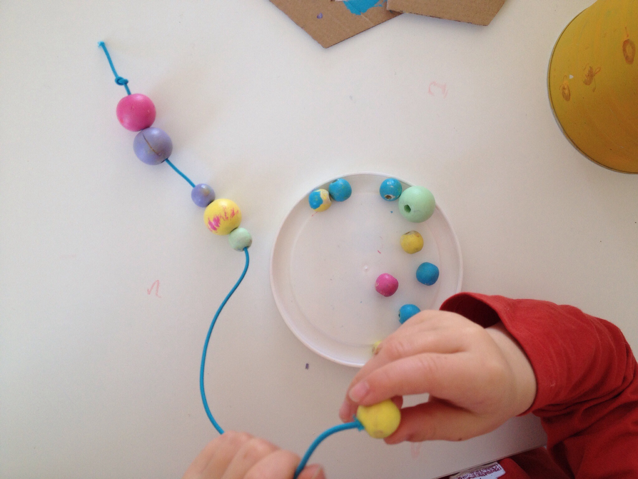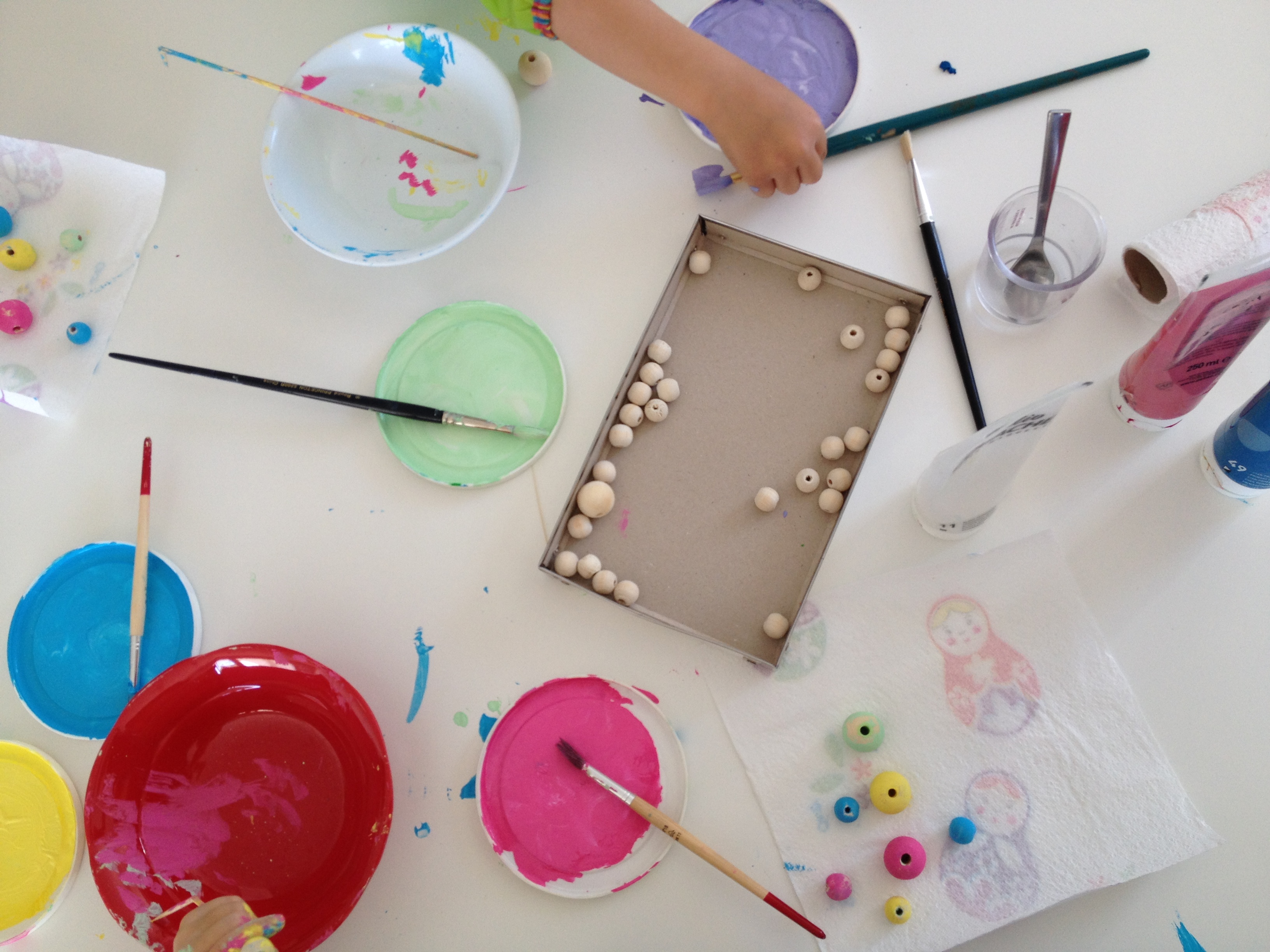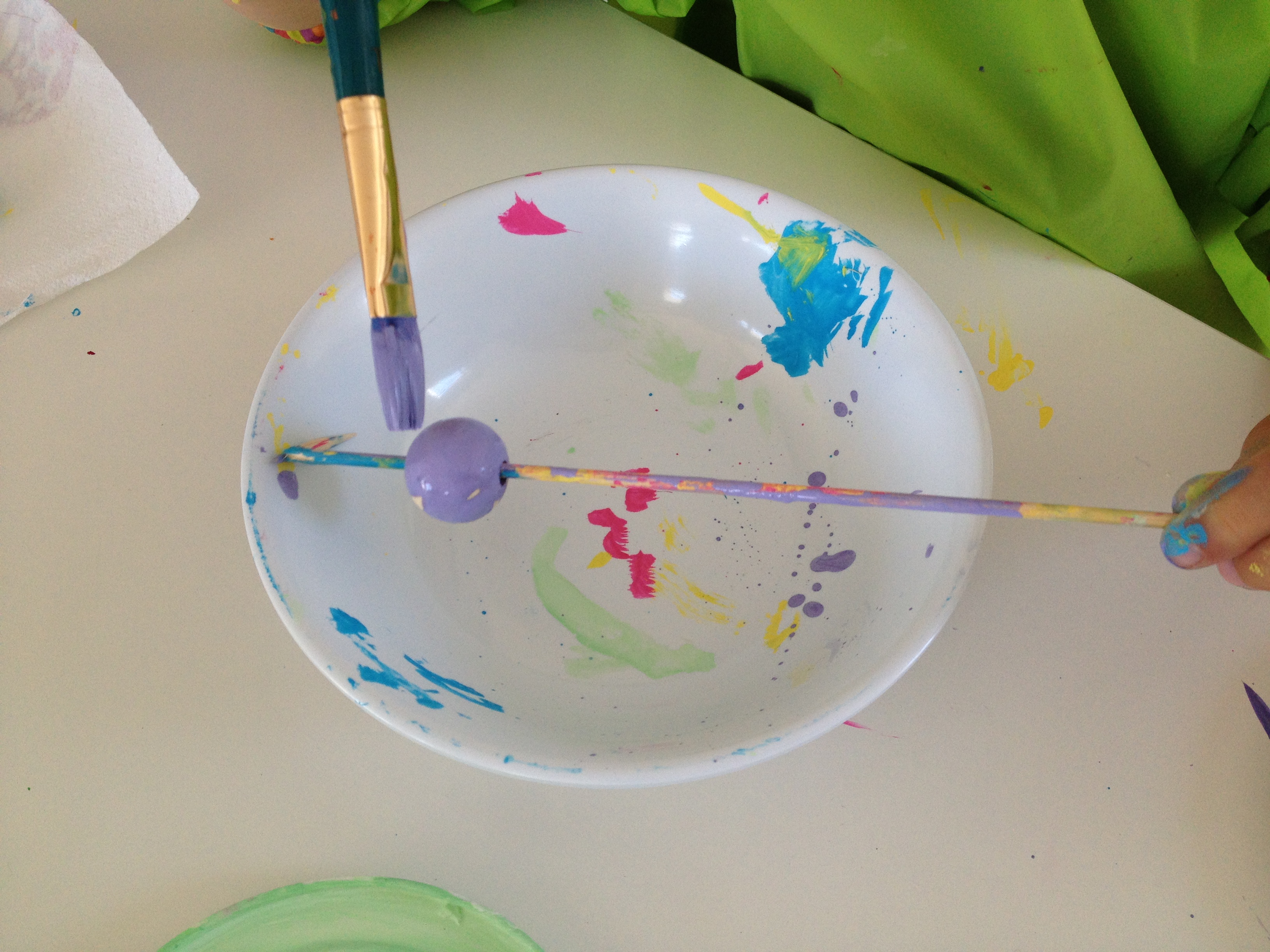 Please note that we varnished our beads after we painted them. The varnish keeps the paint from coming off of the beads and damaging your clothes.