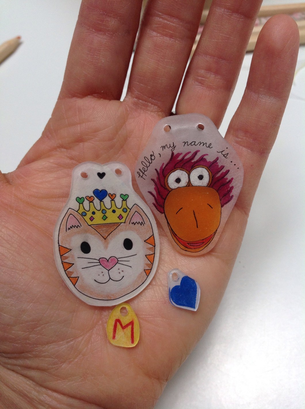 I found a material that has me inspired to draw more, to create characters and new worlds. It’s called “shrinking plastic ” or “plastique dingue” in French. I’ve used it to make pendants for necklaces and charms for bracelets and I’m officially hooked. However, now I understand why these little DIY items can be so pricey…they take a lot of work. The ones that I’ve made are all hand drawn, colored and cut. Then I add a piece of string and make it wearable. If I don’t answer my phone in the coming weeks it’s because I’m shrinking plastic :)