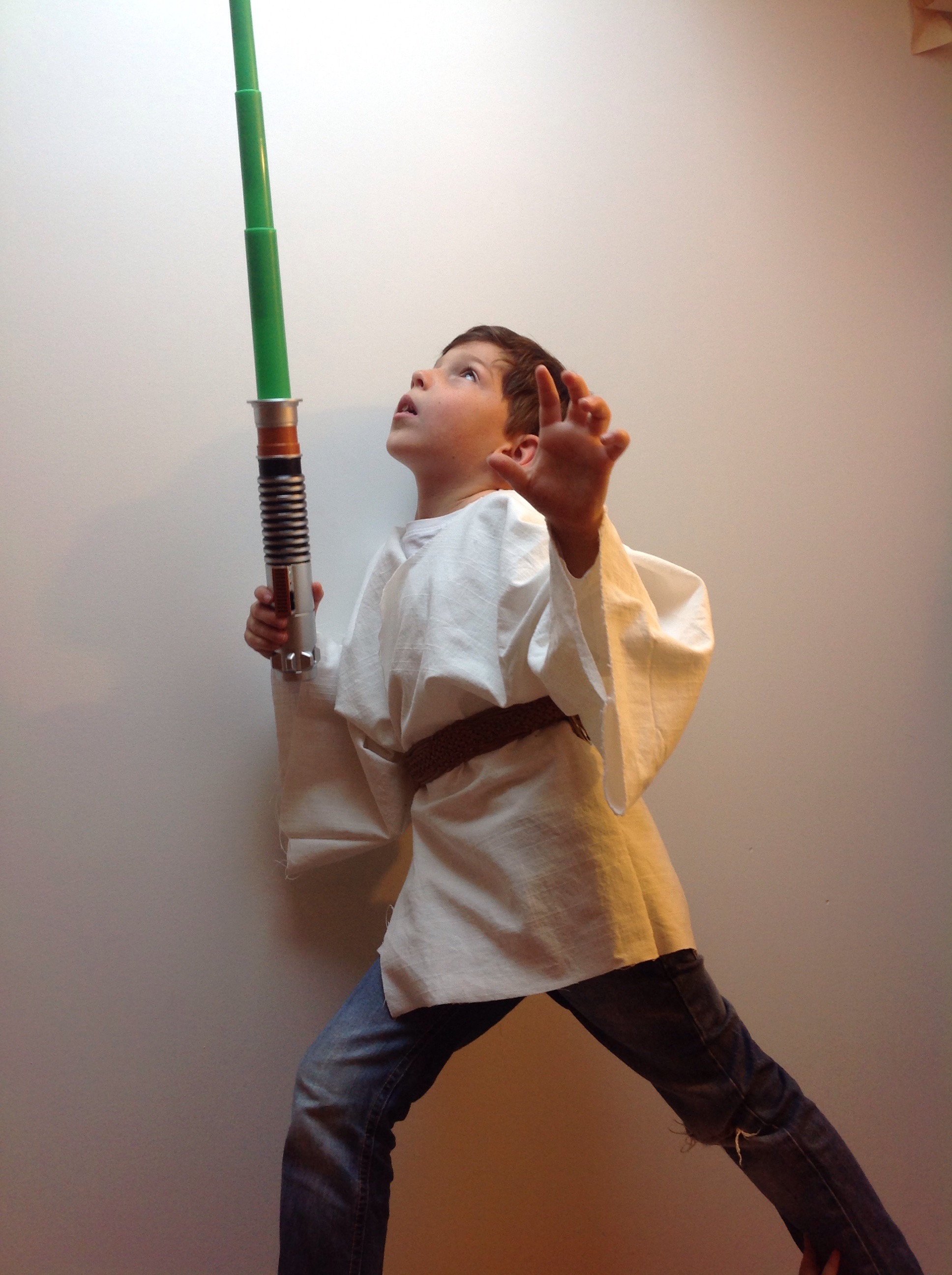 I just wanted to share a last minute Halloween costume with all of you. This one will be used by my Star Wars crazy boy but it can be tailored to fit any size. For detailed instructions please go to Earnest Home Co. because that’s what I did and it seriously took me about thirty minutes to make Luke Walker’s kimono – so thank you Earnest Home Co.!