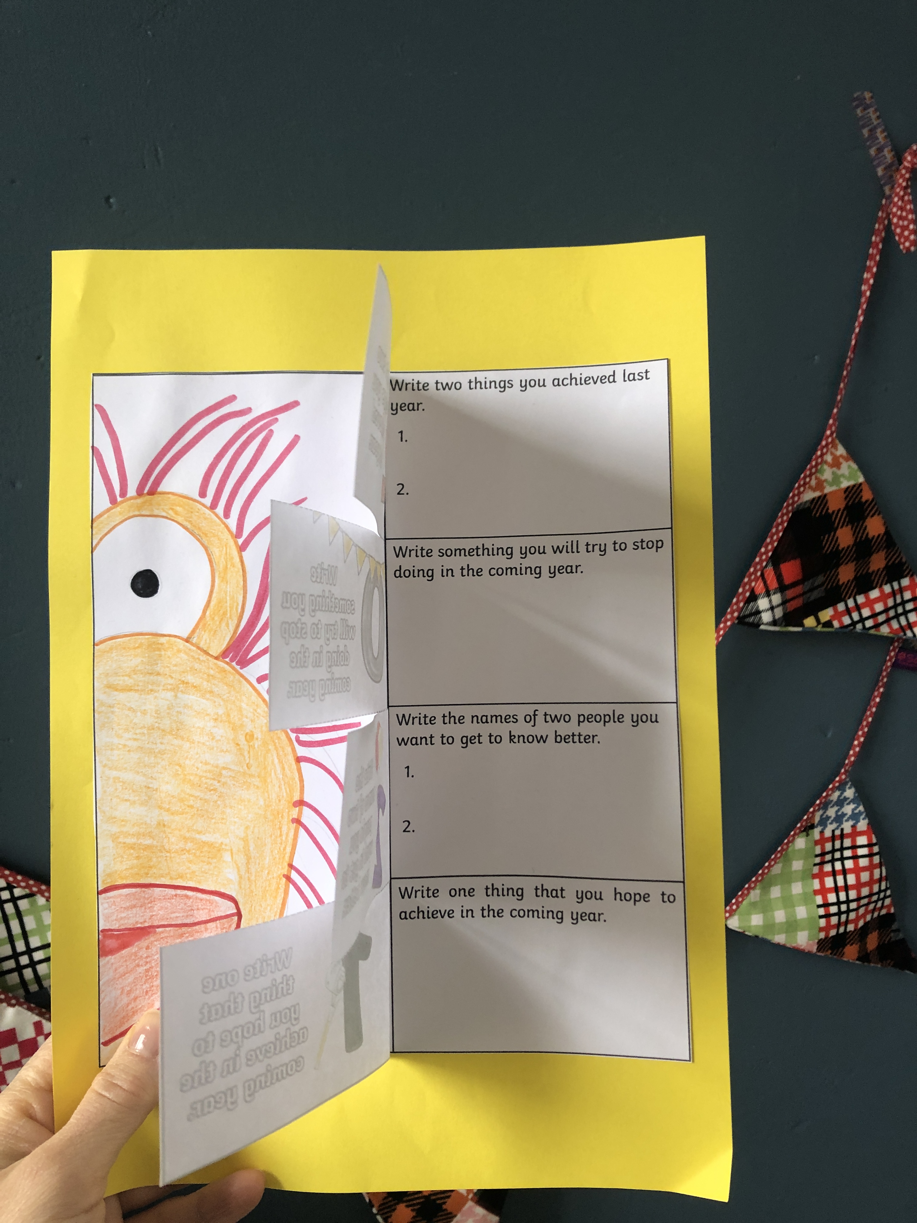 Today I am sharing a set of worksheets from twinkl.com and picklebums.com. The Twinkl site was great because it provided me with a great flap activity that gets our students answering simple questions pertaining to their resolutions. I like the sheets that I picked because you can use them as a book or you can keep them flat and use the blank side to draw in an image. I decided to apply self portraits to our blank side and this is especially great for the classroom as you students will be able to guess who the resolutions belong to by both reading and looking at the portrait.