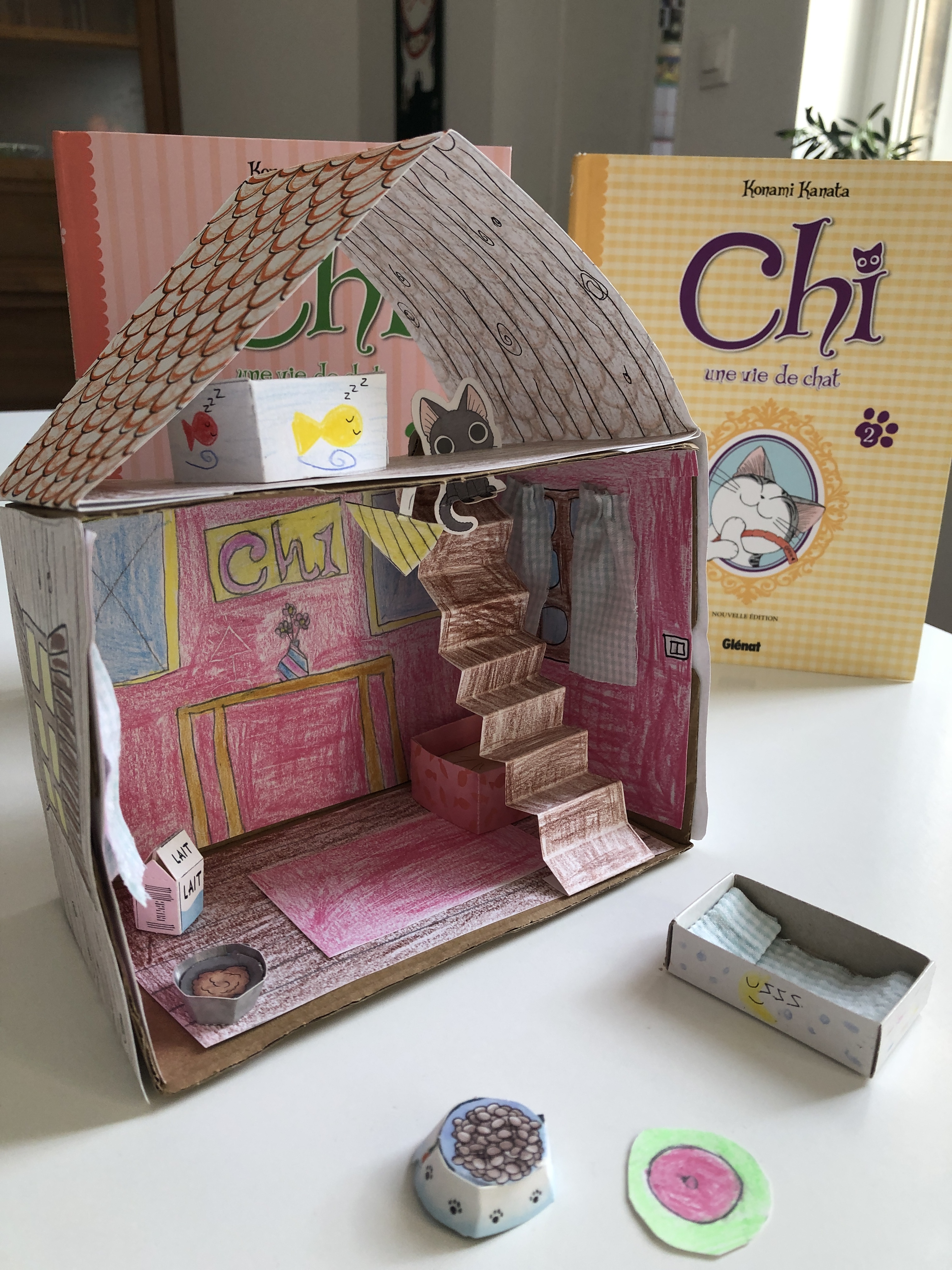 My daughter and I made this paper doll house together after being inspired by some free paper objects that we received with a Chi comic book.